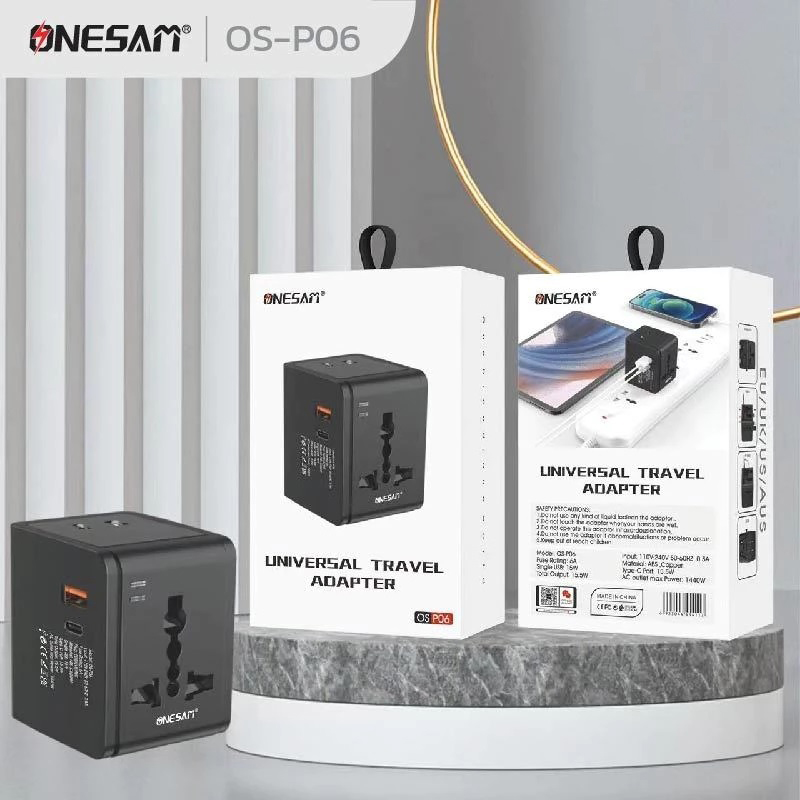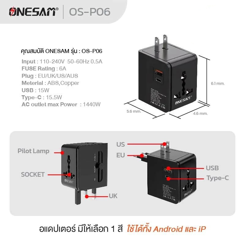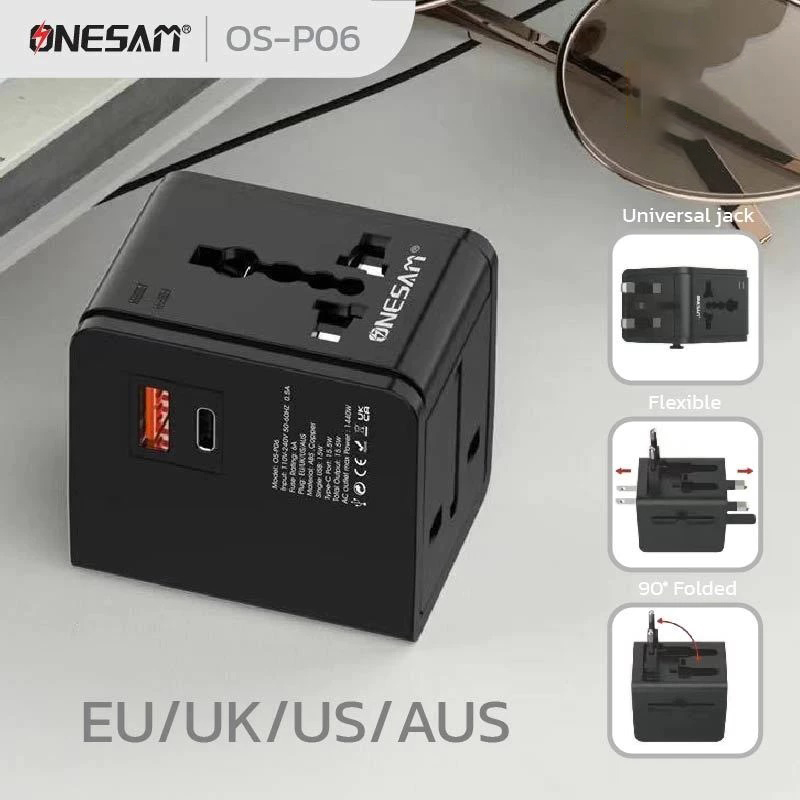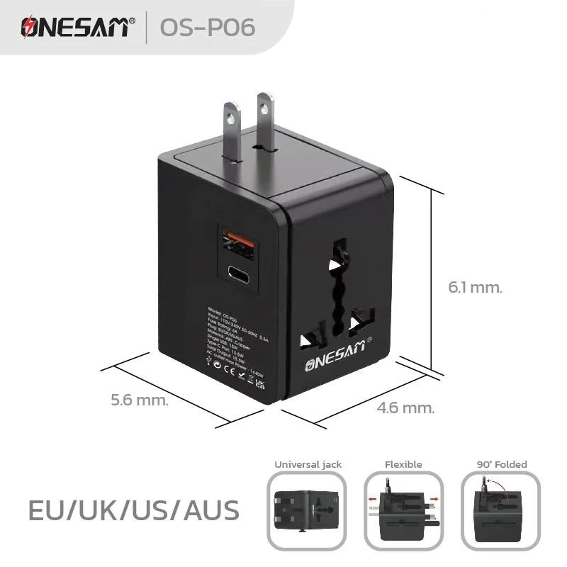 ONESAM ตัวแปลงขาปลั๊กไฟ Universal EU/UK/US/AUS Plug รุ่น OS-P06 - Black