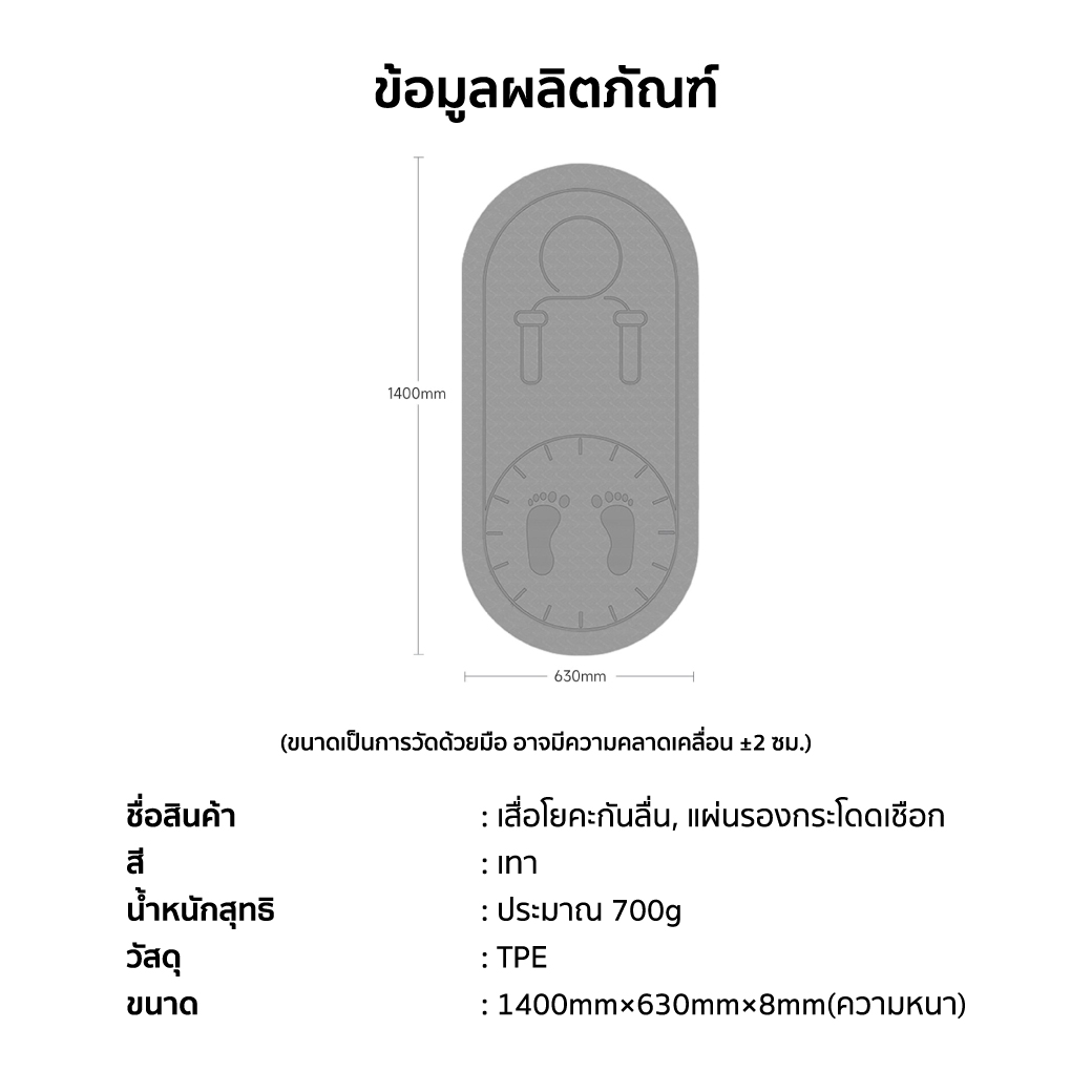 Wonder Care Multi-functional Skipping Rope Mat เสื่อโยคะ เสื่อกระโดดเชือก หนา 8 mm - Grey